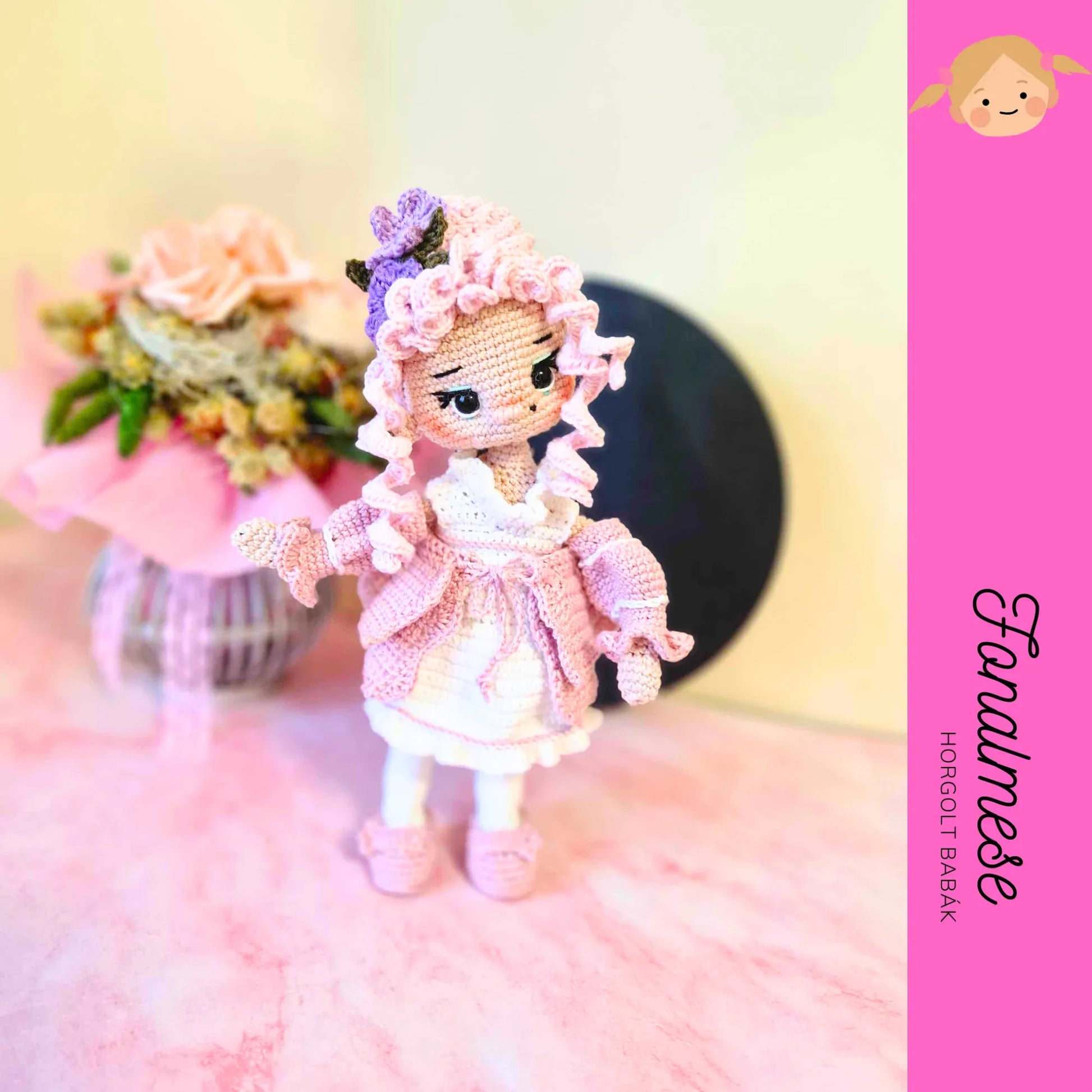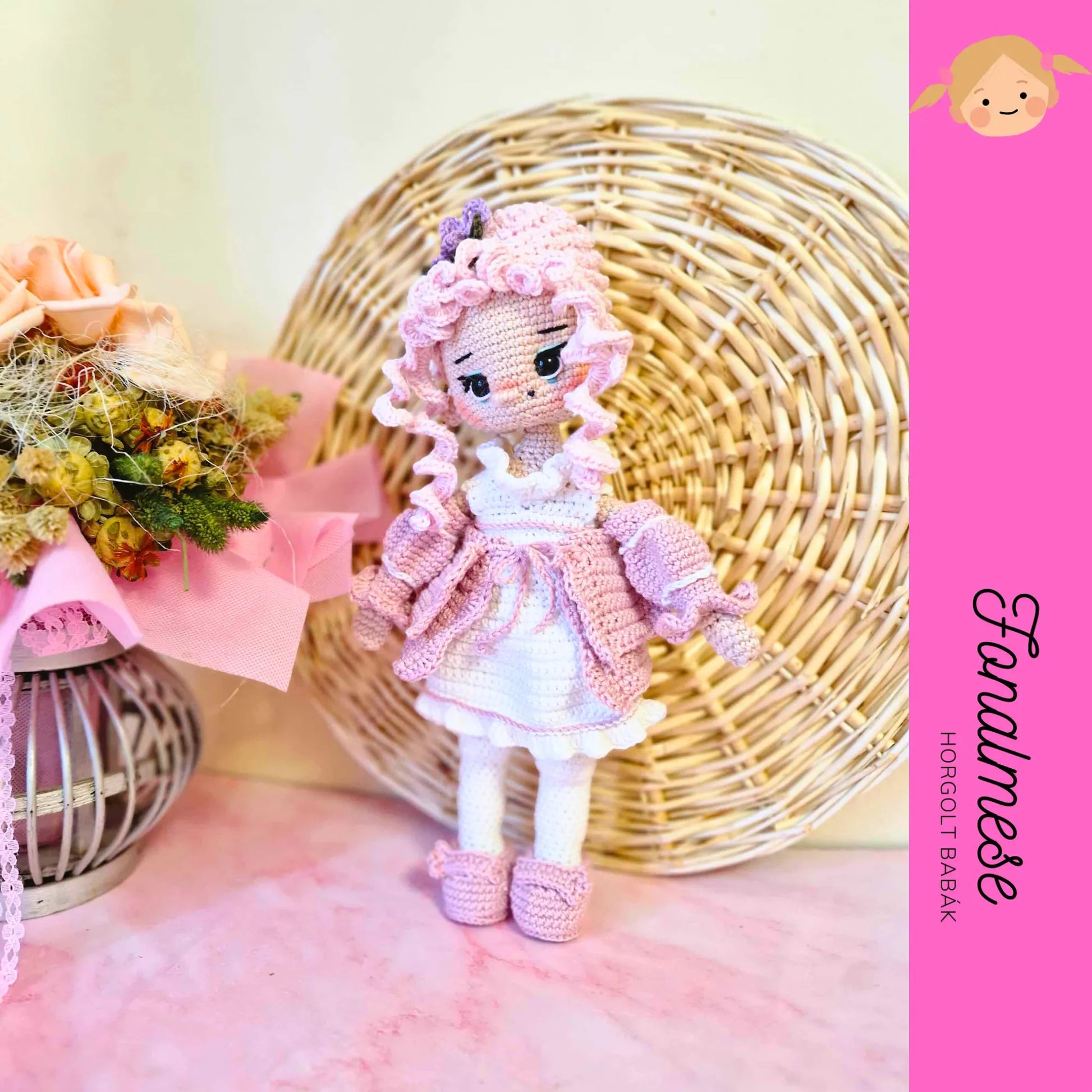 Ismerd meg Barokk babát, a kézzel horgolt, elegáns babát, aki barokk stílusu ruhájával a letisztultság és báj megtestesítője.