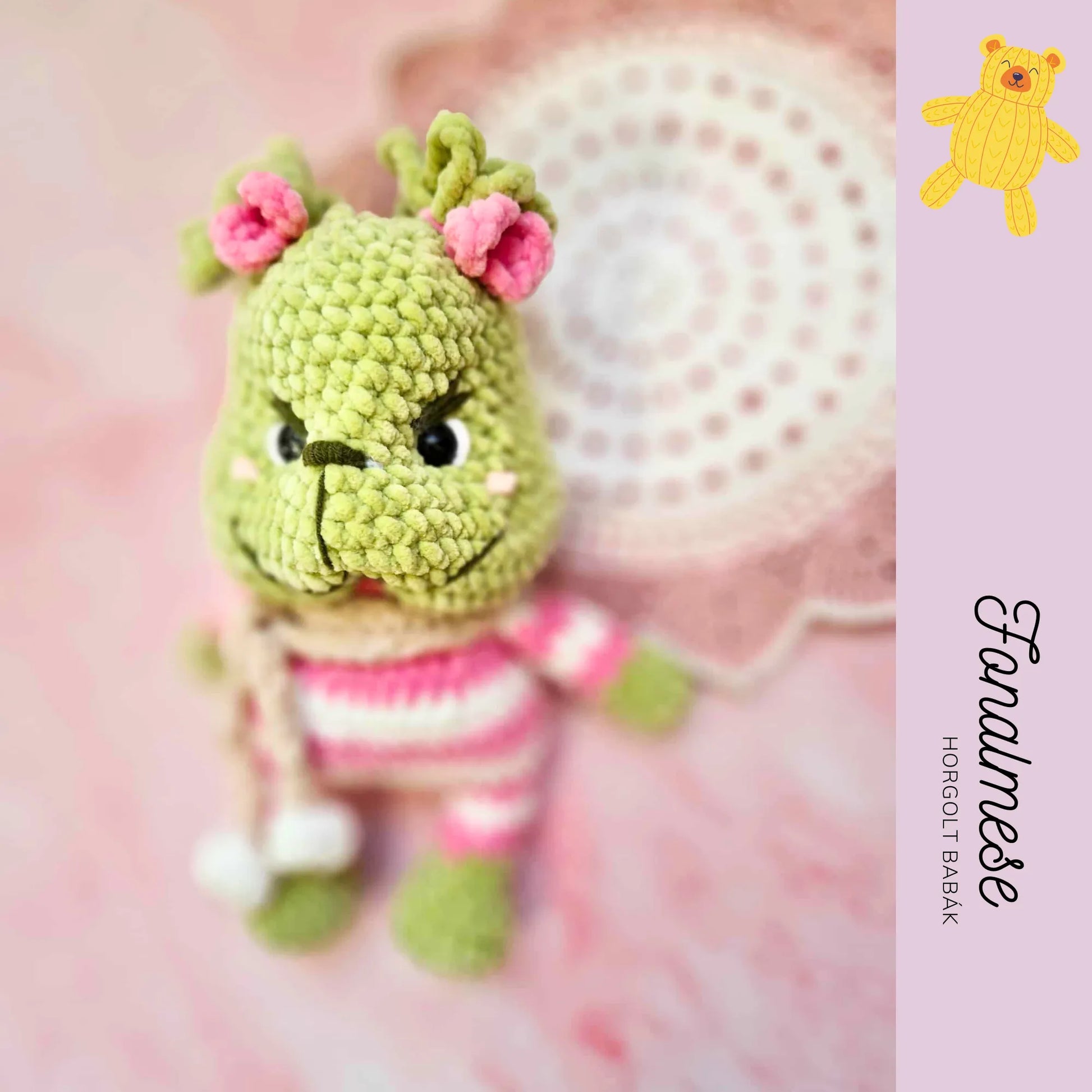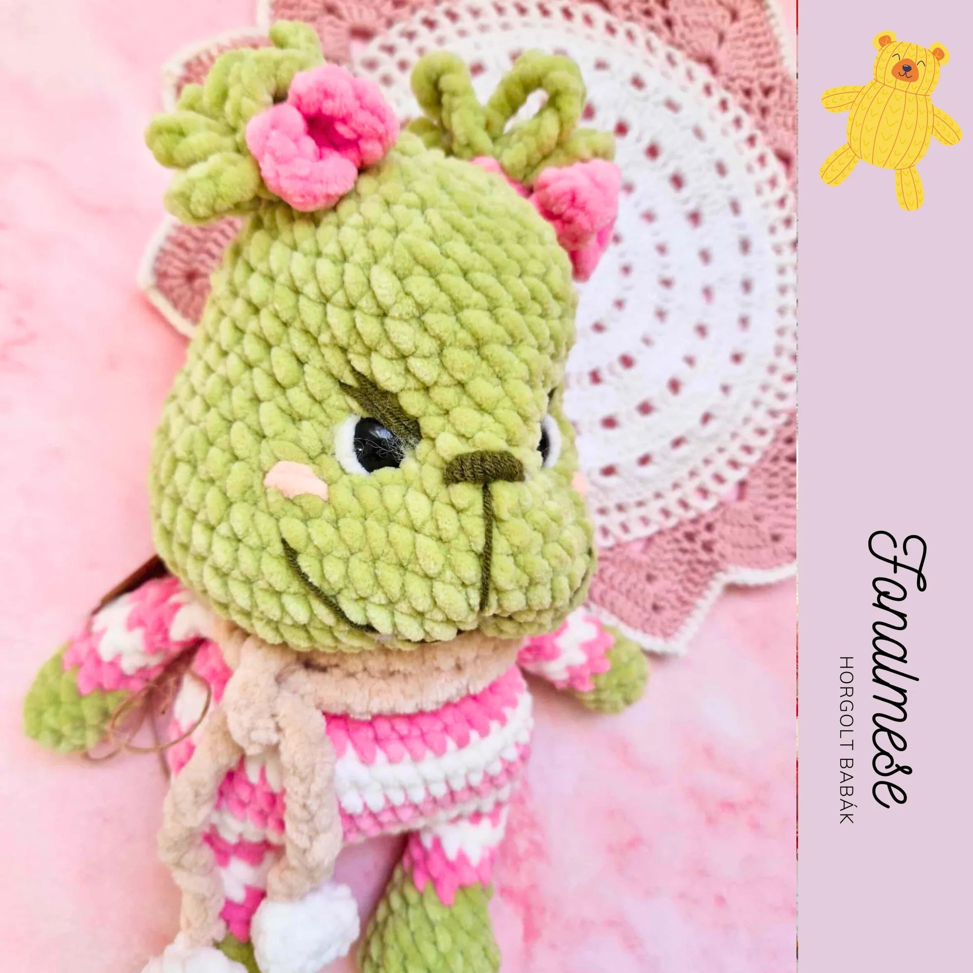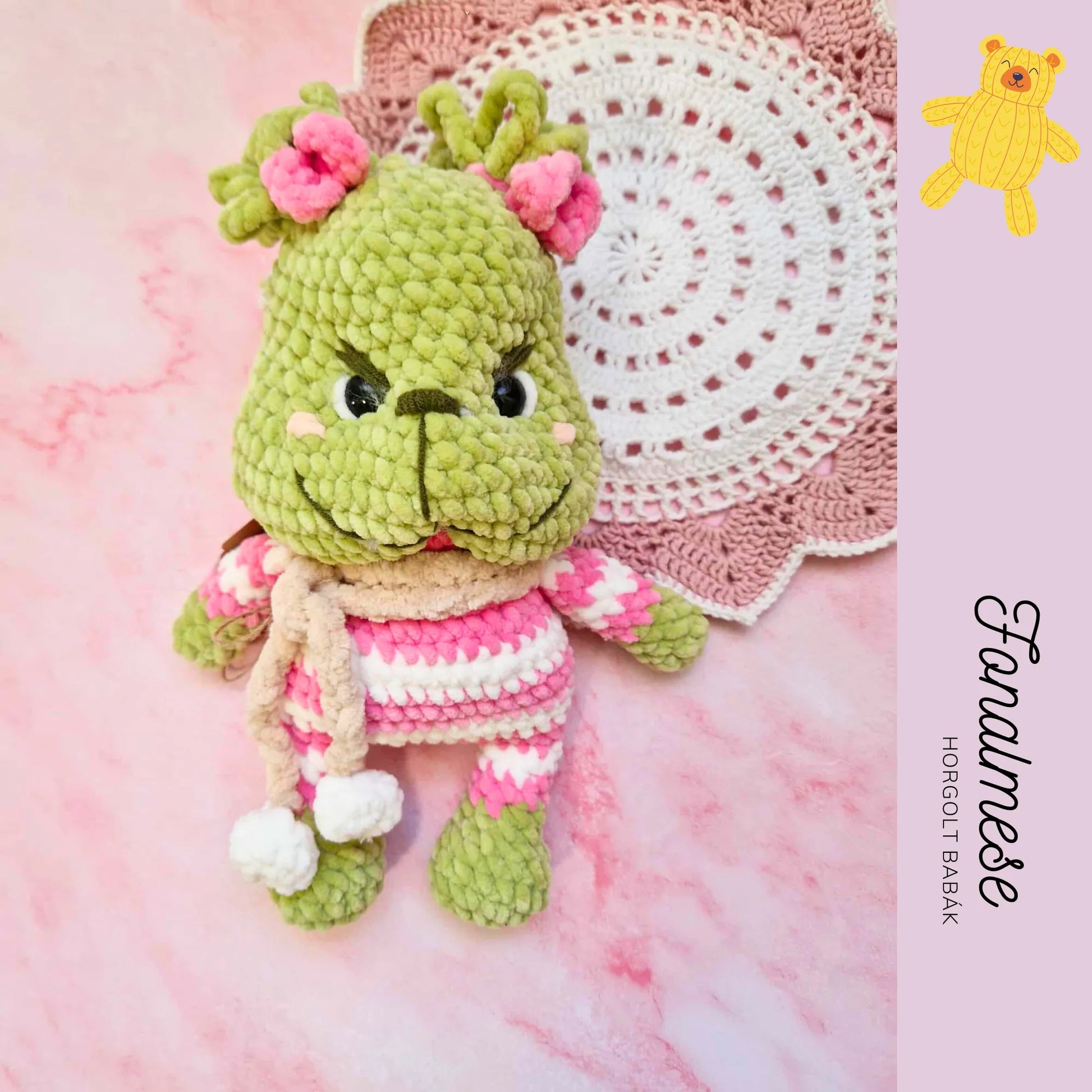 Ez a zseníliából készült Grincs lány figura vidám és szerethető megjelenésű. Hajában masni, nyakában pedig sál díszíti, ami még játékosabbá és bájosabbá teszi a figurát. Puha tapintású és ölelhető, kézzel készült, így gyerekszobai játékként vagy dekorációként egyaránt tökéletes. Kedves részletei és egyedi karaktere igazi ünnepi hangulatot varázsol a téli napokba.