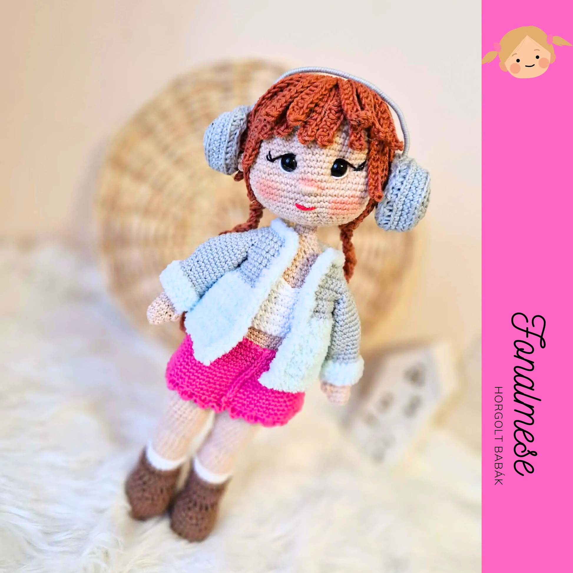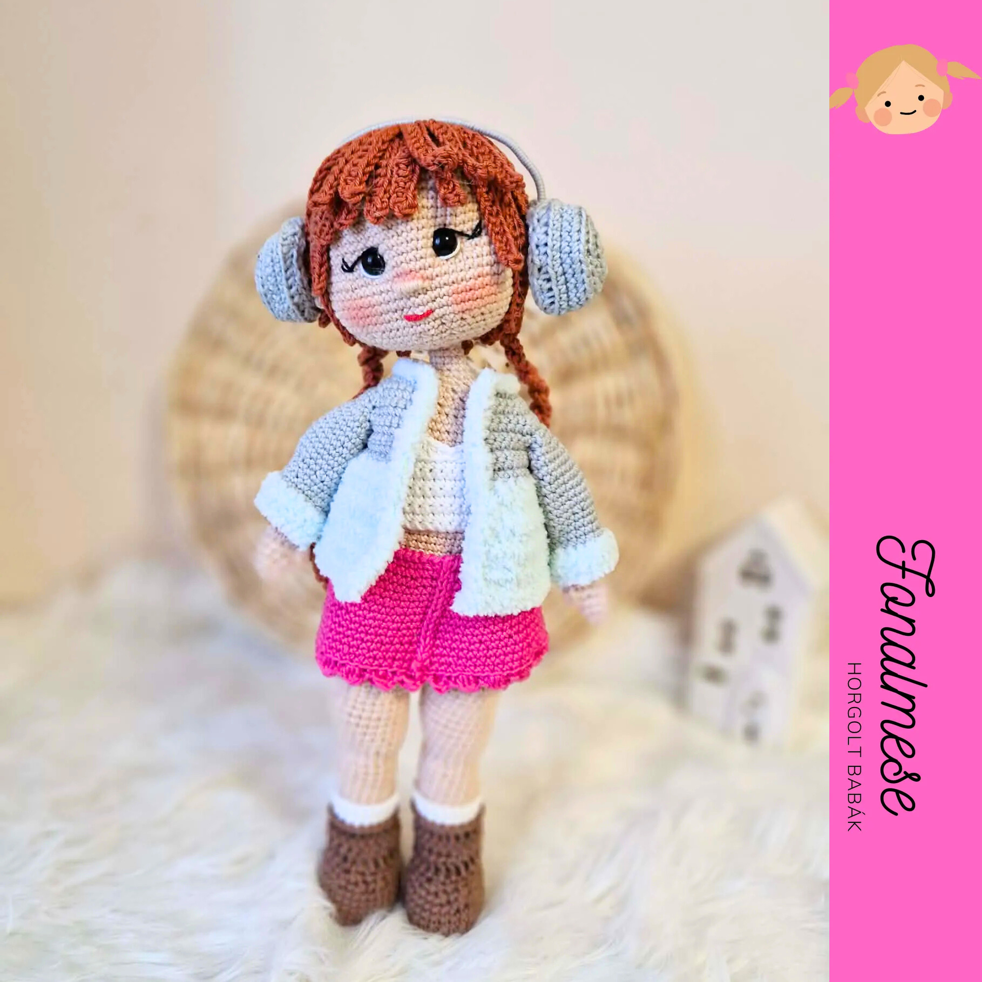 Ez a bájos, kézzel horgolt téli kislány baba meghitt, mesés hangulatot idéz, és tökéletes választás a hideg évszak varázsának megjelenítésére. A 35 cm magas figura gondosan kidolgozott, fonott hajjal készül, amely kedves és rendezett megjelenést ad neki.