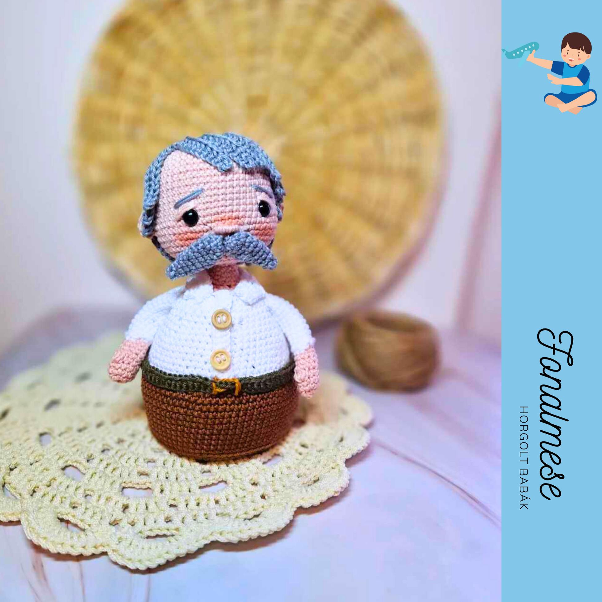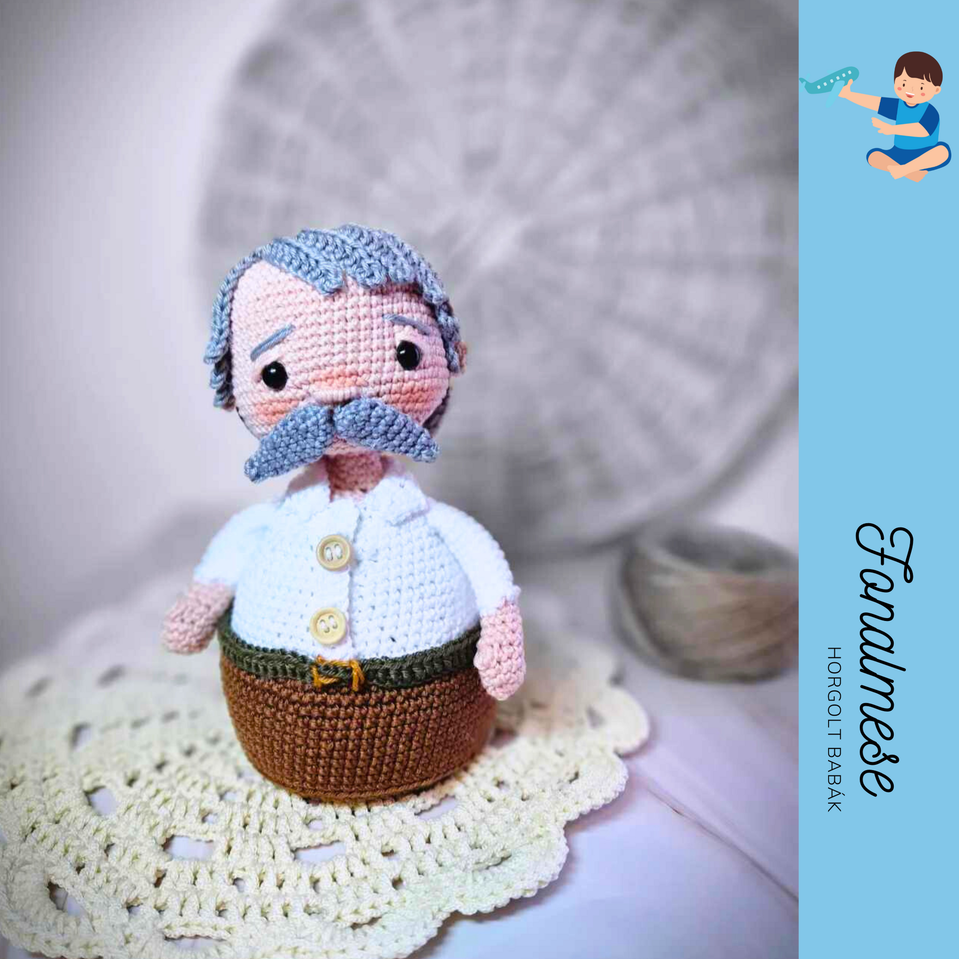 Kerek Papa nemcsak egy horgolt baba, hanem egy kedves emlék – különösen szép ajándék Anyák és Apák napjára, vagy bármikor, amikor egy kis szeretetet szeretnél ajándékozni.