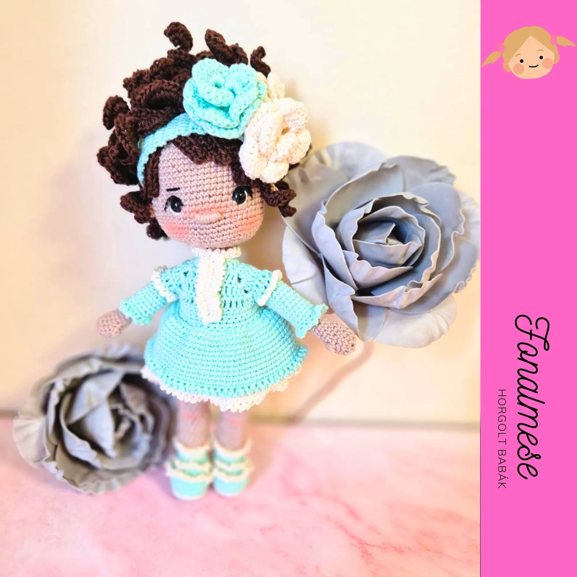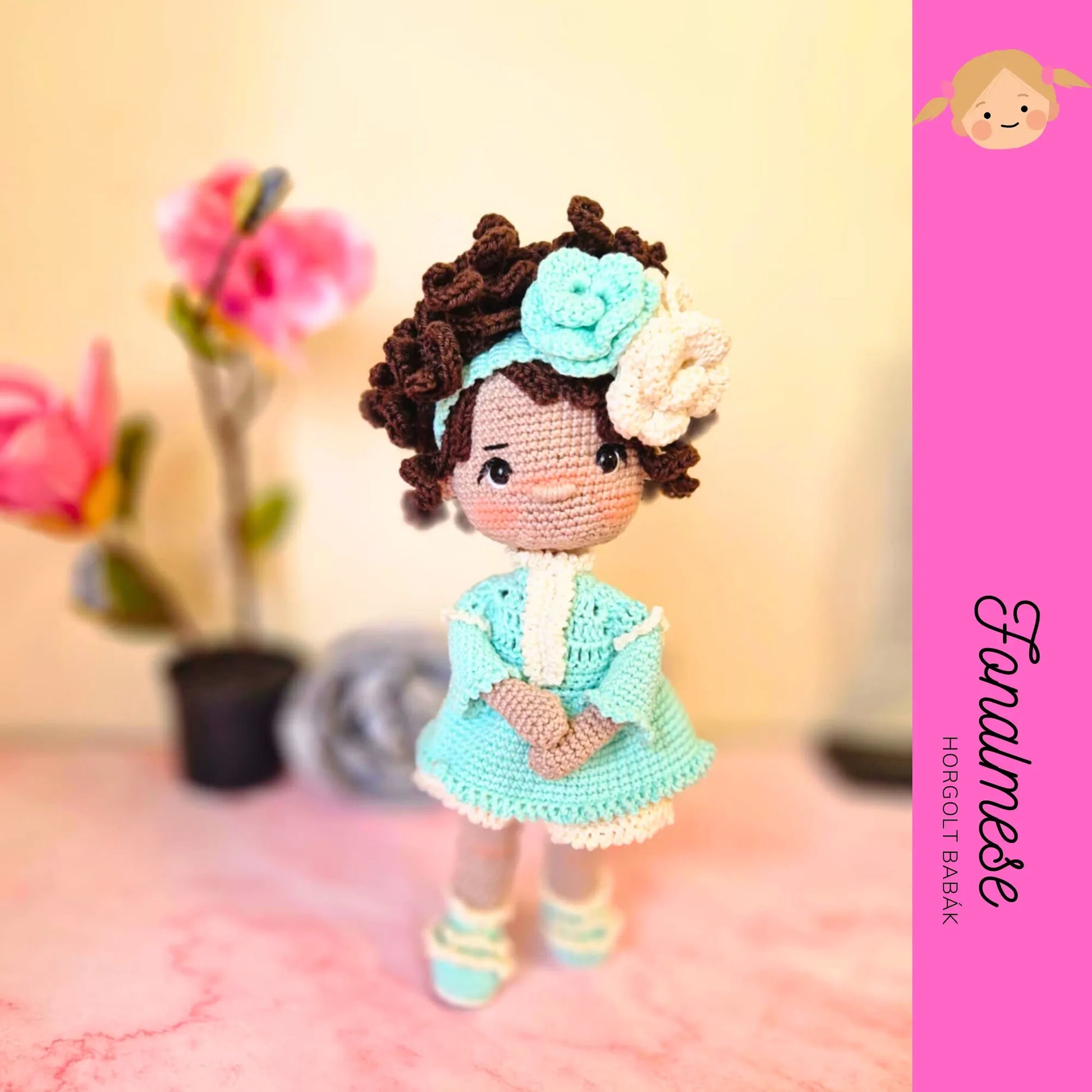 Készítsd el Menta babát, ezzel a részletes horgolási mintával! Ez az imádni való baba, ez üde menta zöld ruhát visel, göndör hajában pedig egy rózsás pánt pompázik. A baba nagysága 31 cm. A középhaladó szintű minta lépésről lépésre vezet végig az elkészítésen, világos utasításokkal és hasznos tippekkel, hogy egy hajlékony, szeretni való amigurumi babát készíts, amely biztosan mosolyt csal bárki arcára. Akár ajándékba szánod, akár a babagyűjteményed bővítve, ez a minta egy örömteli projekt lesz számodra. 🌸