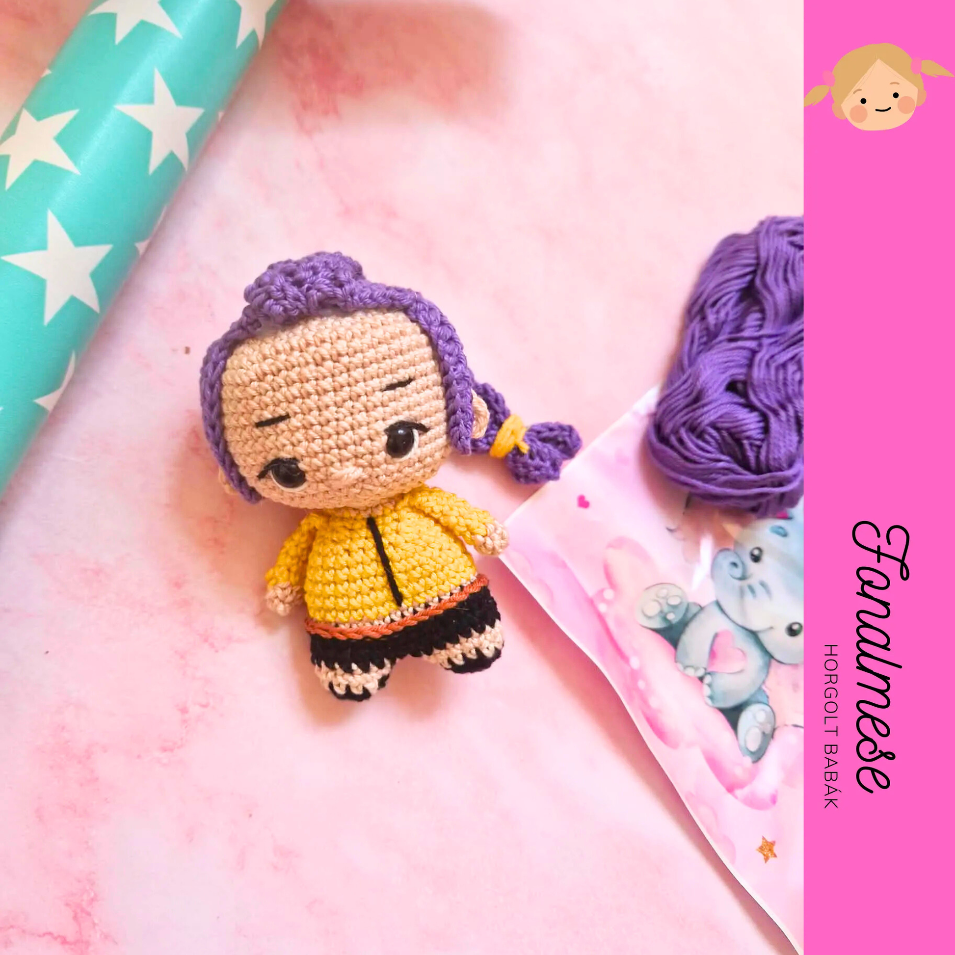 Ez a 13 cm magas horgolt Mini Rumi baba igazi kedvesség kis méretben. Puha, kézzel készült figura, ölelgethető és szerethető, ugyanakkor praktikus méretének köszönhetően akár kulcstartóként is használható.
