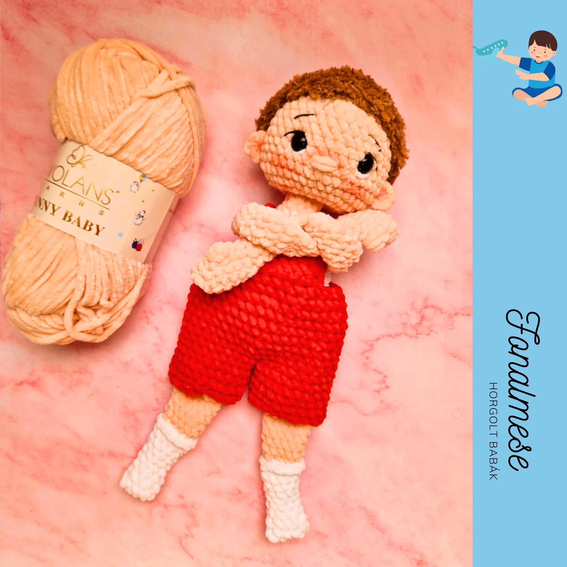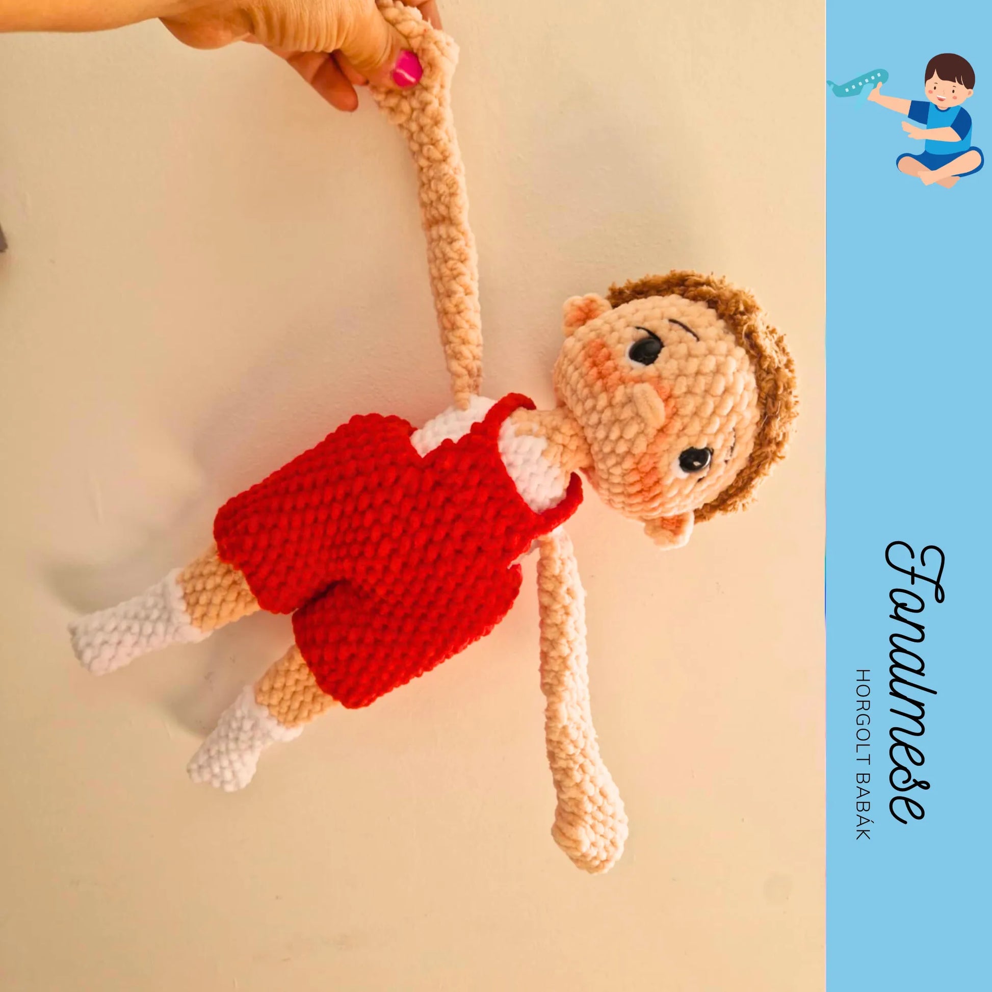 A babához két nadrág tartozik – egy barna és egy piros –, így könnyedén át lehet öltöztetni hangulat szerint. Biztonsági szemeinek köszönhetően a baba 3 éves kortól ajánlott, hiszen játék közben is biztonságos. A nagykezű Pisti nemcsak egy szerethető társ a gyerekek számára, hanem aranyos dekorációként is megállja a helyét a szobában.