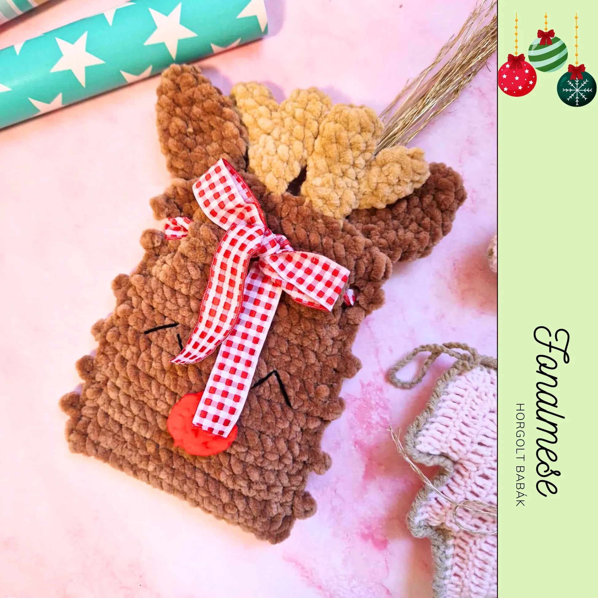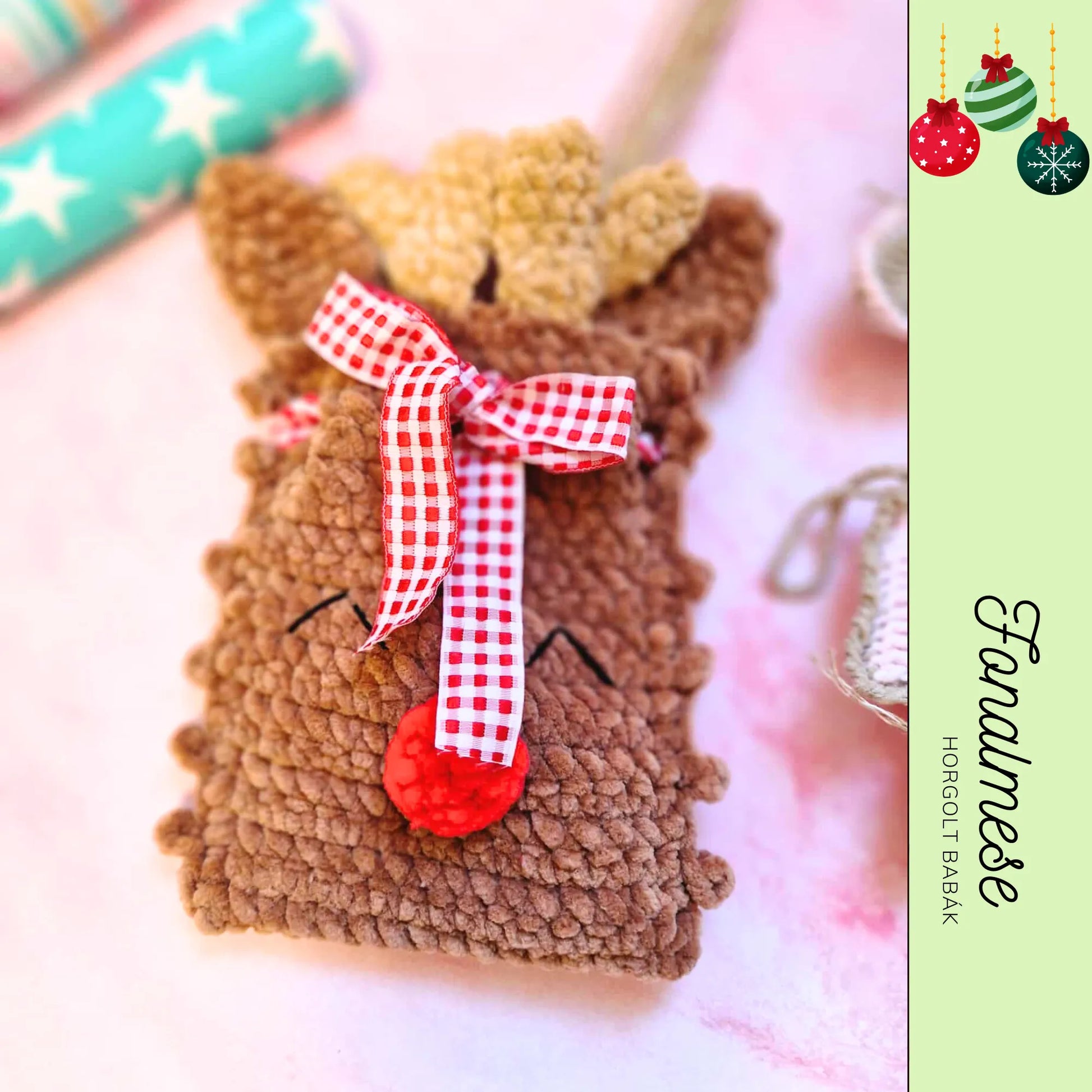Ez az aranyos, kézzel horgolt rénszarvasos tasak igazi ünnepi hangulatot varázsol otthonodba!