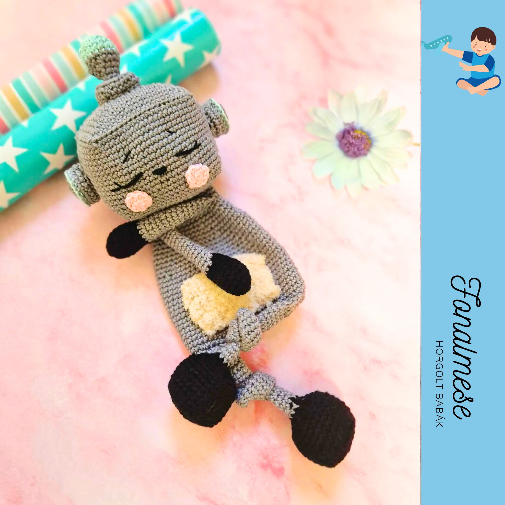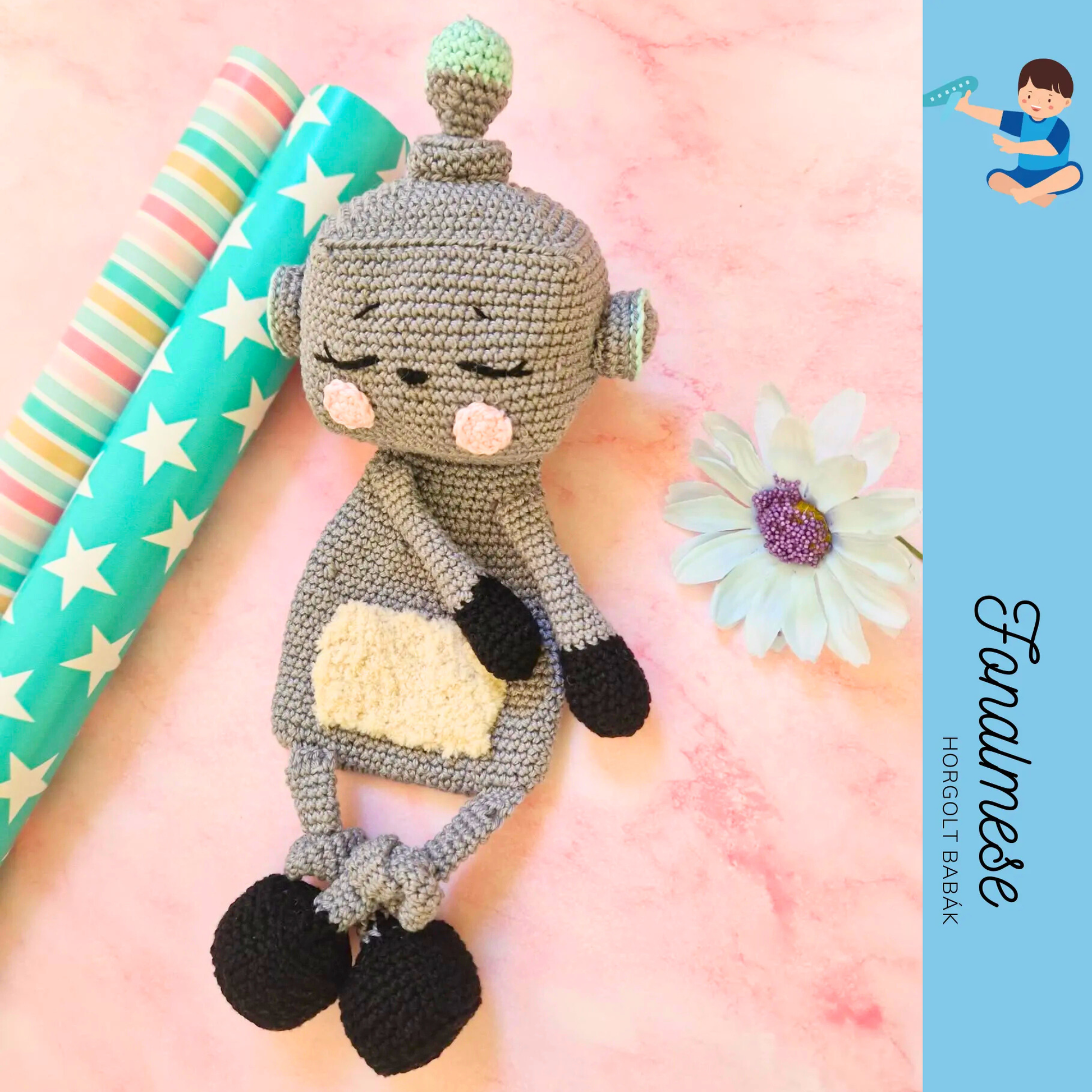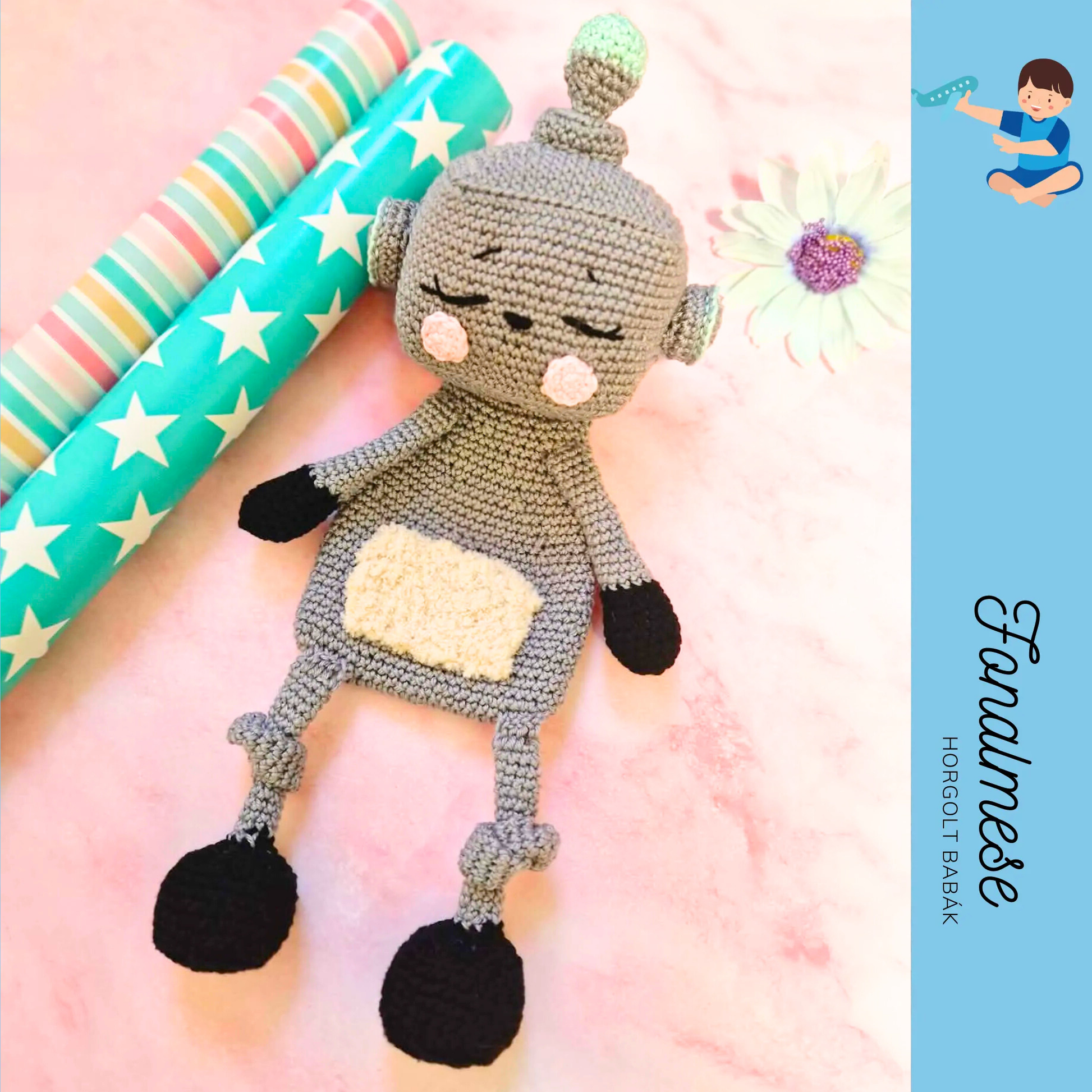 A robotos szundipajtás egy aranyos, horgolt játék, ami puha pamut fonalból készült. Bájos robotformája leköti a babák figyelmét, miközben puha teste tökéletes a szundihoz és ölelgetéshez. Praktikus, kedves társ a pihenéshez és játékhoz egyaránt.