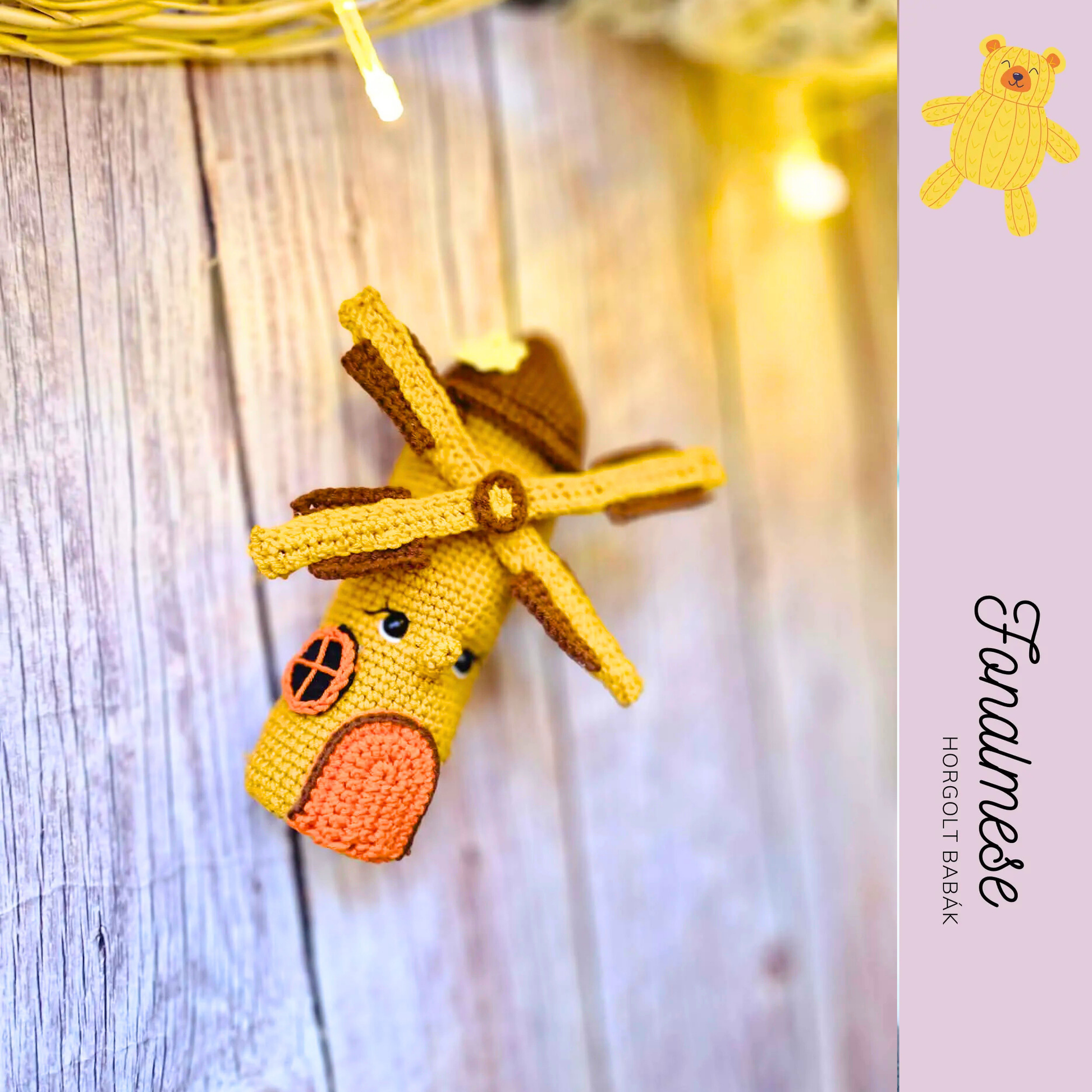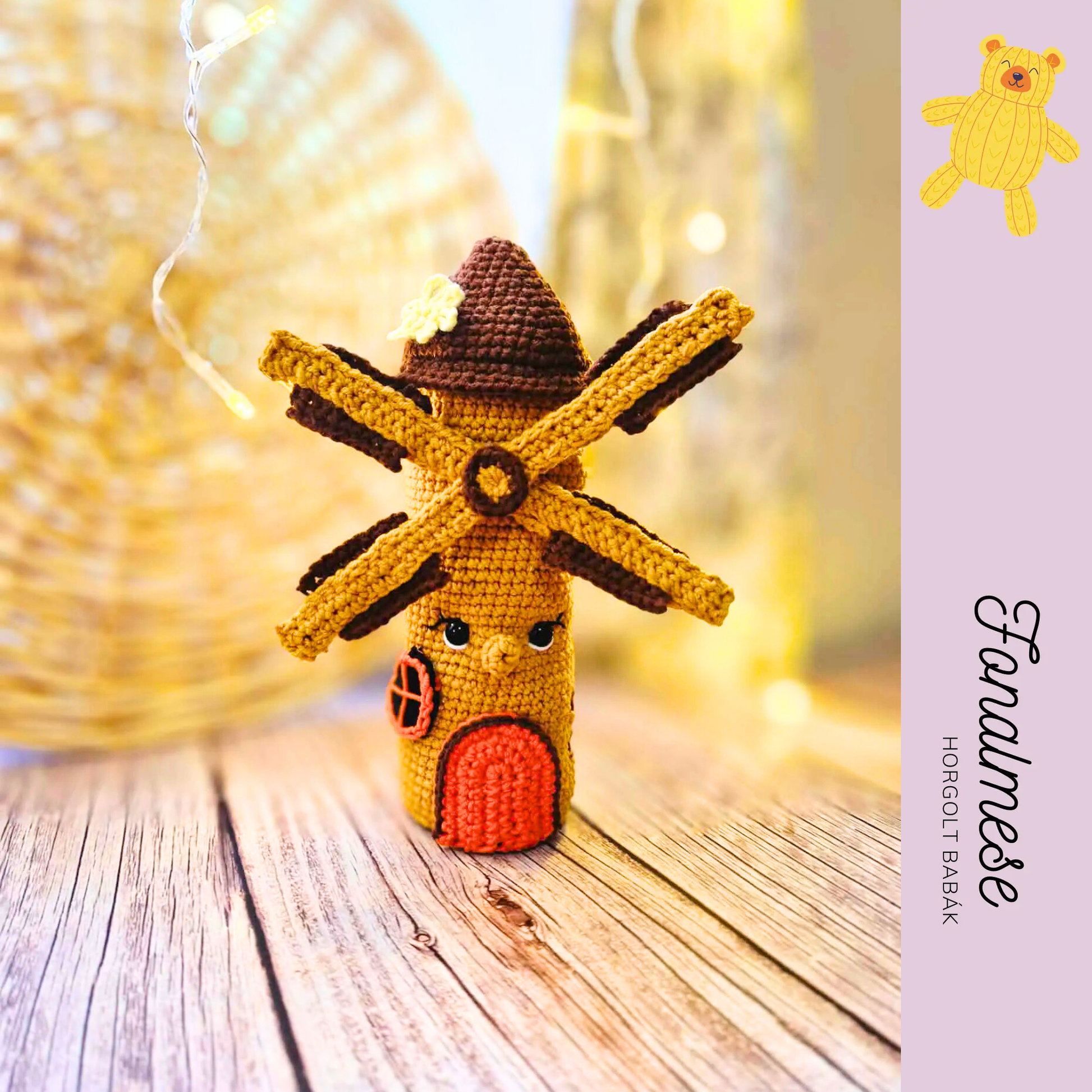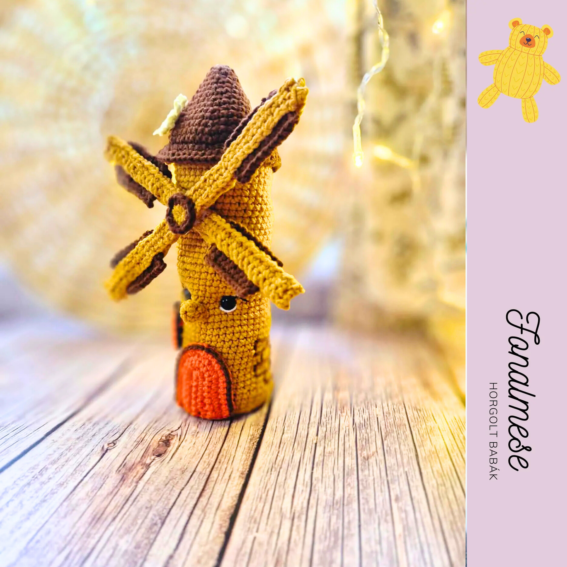 Ez a barna horgolt szélmalom egy kedves, dekoratív figura, amely rusztikus hangulatával tökéletes kiegészítője lehet babaszobának, polcnak vagy akár ajándéknak is. A mintaleírás segítségével lépésről lépésre elkészítheted ezt az egyedi, részletgazdag darabot.