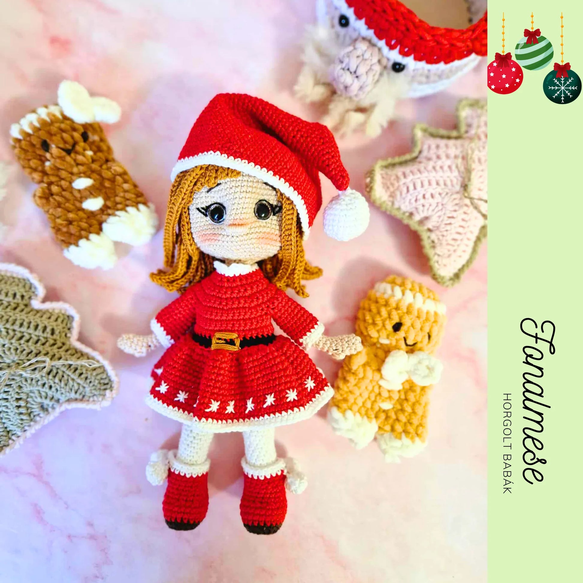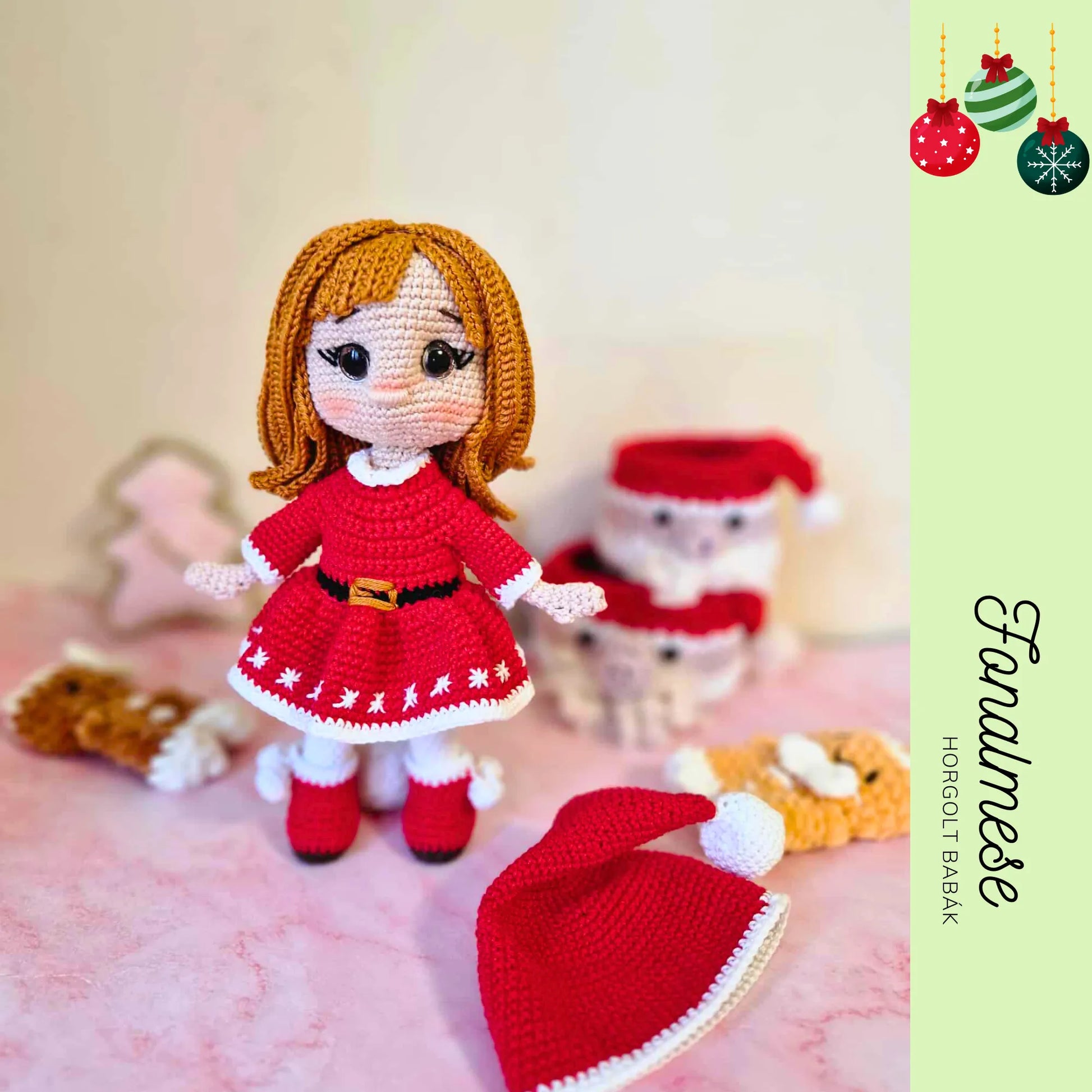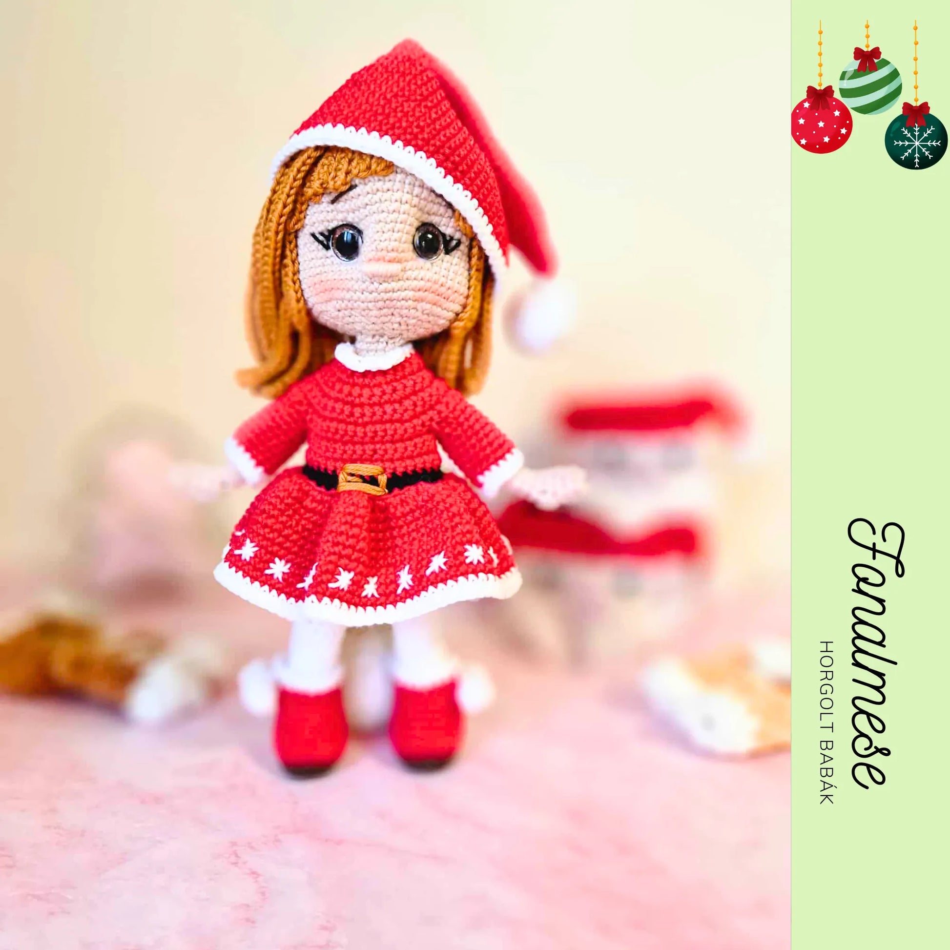 🎅 Horgolt Télapó lány baba – kézzel készült karácsonyi dísz 💖
