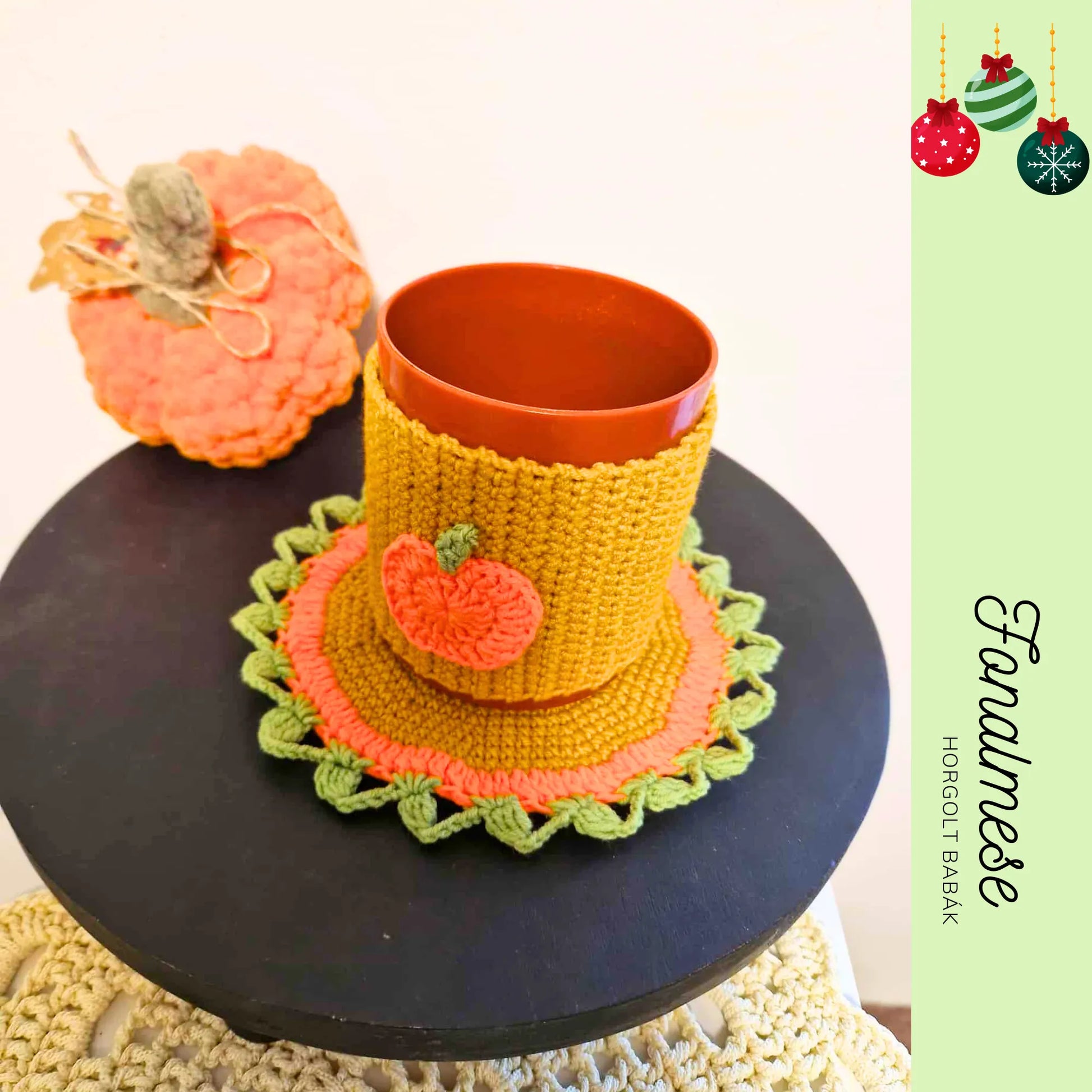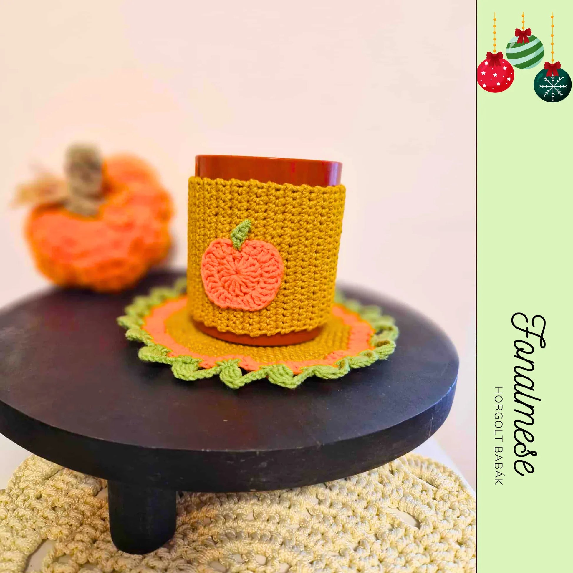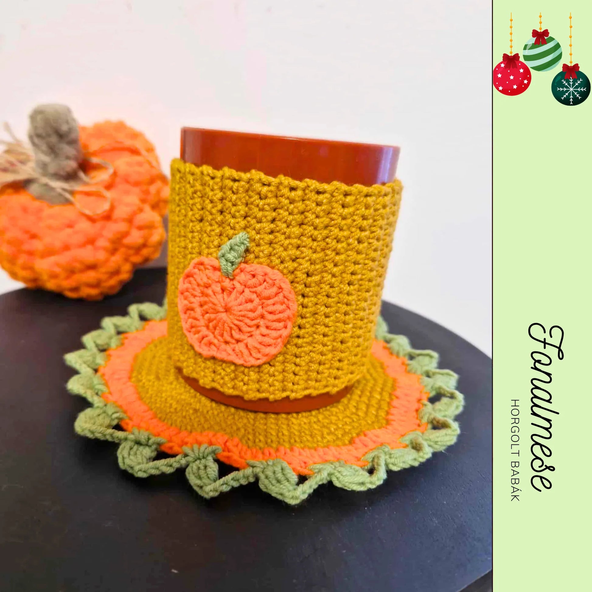 Ez a bögre pulcsi és poháralátét szett az ősz meghitt hangulatát hozza el otthonodba. Vidám tökös mintája és meleg színei igazi őszi hangulatot árasztanak. YarnArt Jeans fonalból készült, amely puha, mégis tartós anyag, így kellemes tapintású és jól bírja a mindennapi használatot. A bögre pulcsi egy átlagos méretű bögrére illik, és segít melegen tartani az italt, míg a hozzá illő alátét megvédi az asztalt – együtt pedig tökéletes őszi kiegészítők a kávé vagy tea mellé.