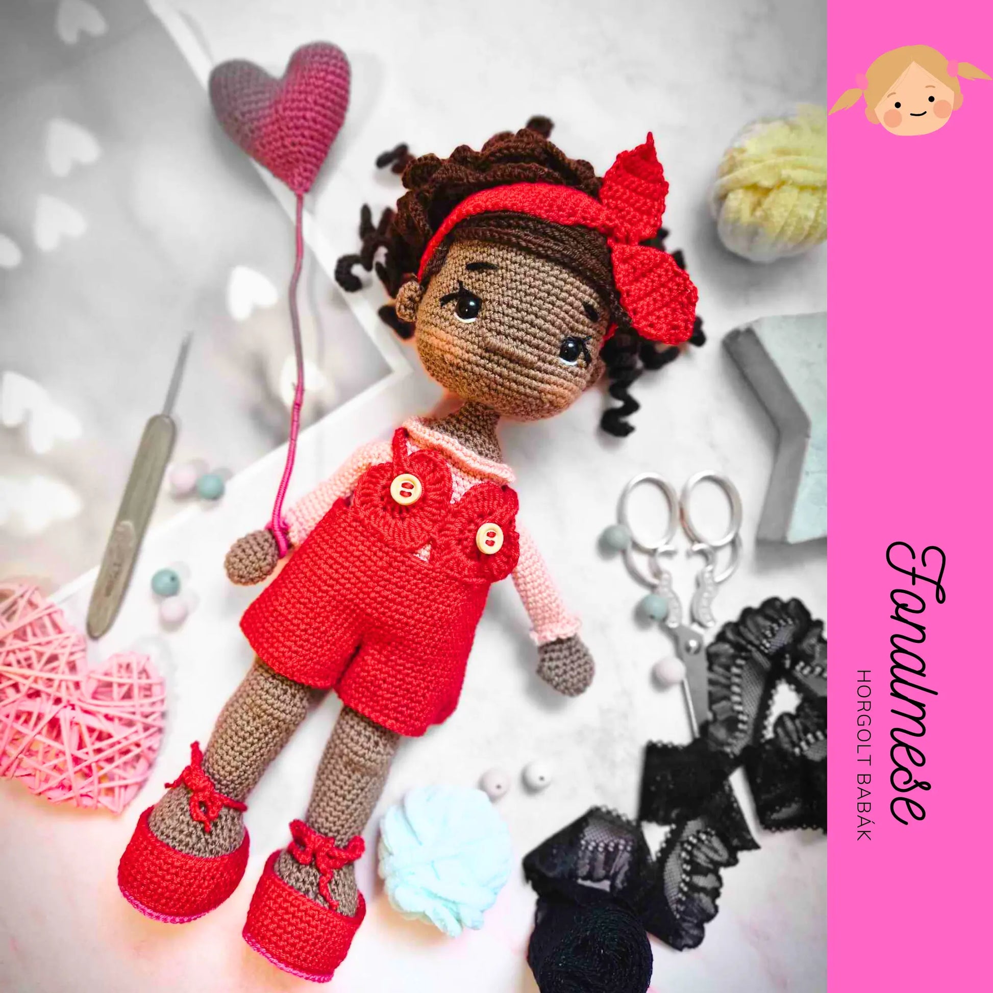 Készítsd el a bájos Valentina babát ezzel a részletes horgolási mintával! Ez az imádni való baba gyönyörű piros és rózsaszín ruhát visel, szív alakú lufival és copfos hajjal, tökéletes választás Valentin napra. A baba nagysága 30 cm. A középhaladó szintű minta lépésről lépésre vezet végig az elkészítésen, világos utasításokkal és hasznos tippekkel, hogy egy hajlékony, szeretni való amigurumi babát készíts, amely biztosan mosolyt csal bárki arcára. Akár ajándékba szánod, akár a babagyűjteményedet bővítenéd, ez a minta egy örömteli projekt lesz számodra. 🌸