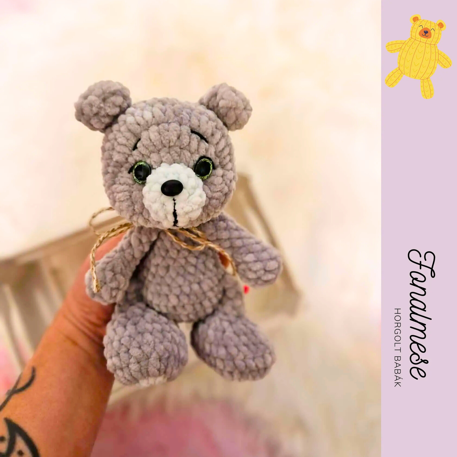 Ez a zseníliából készült szürke maci puha tapintású, kedves kézműves figura. Bársonyos anyaga kellemes érzetet ad, visszafogott színe pedig időtlen, megnyugtató megjelenést kölcsönöz neki. Tökéletes választás ölelgetnivaló plüssként vagy gyerekszobai díszként, és szívhez szóló ajándék lehet bármilyen alkalomra. 🧸✨