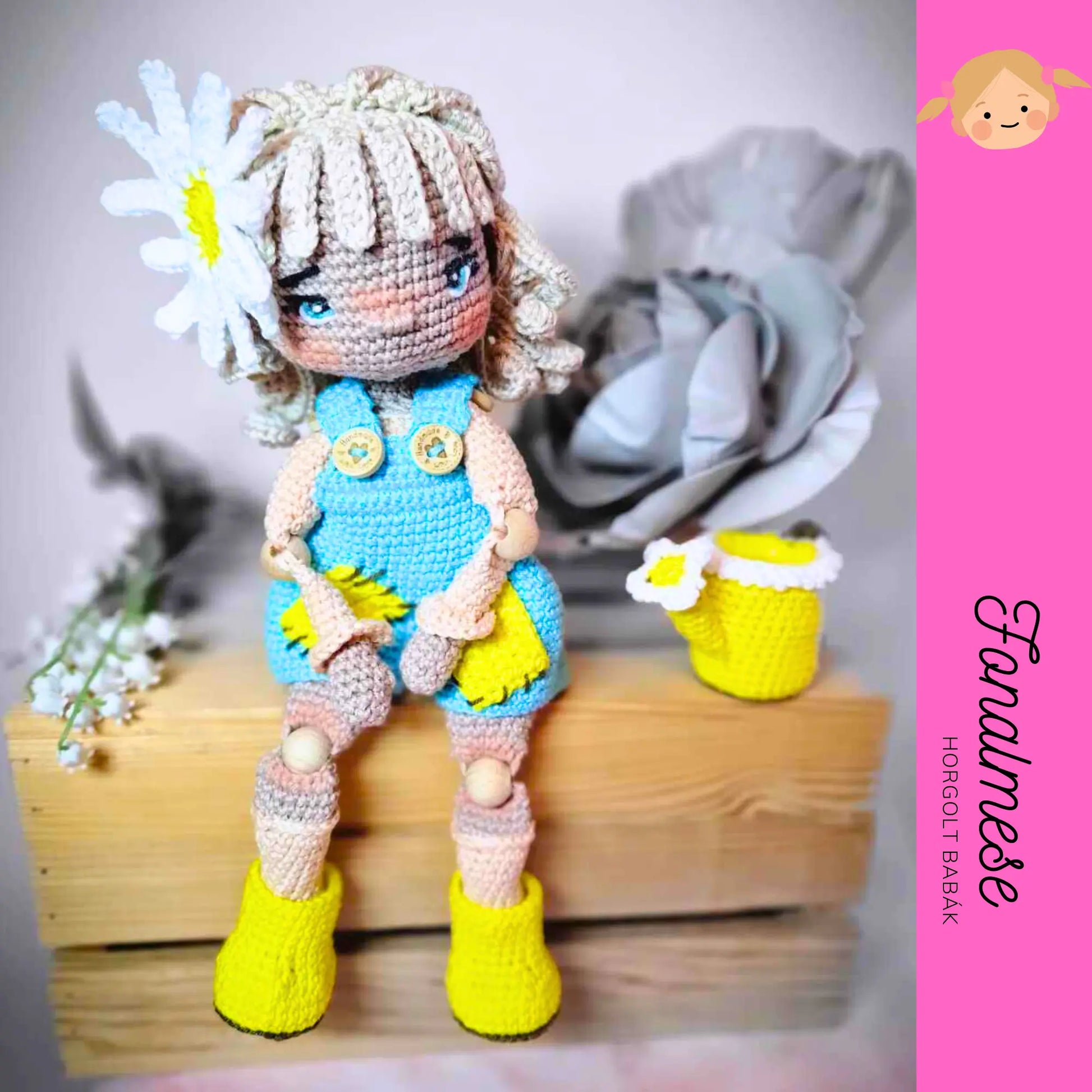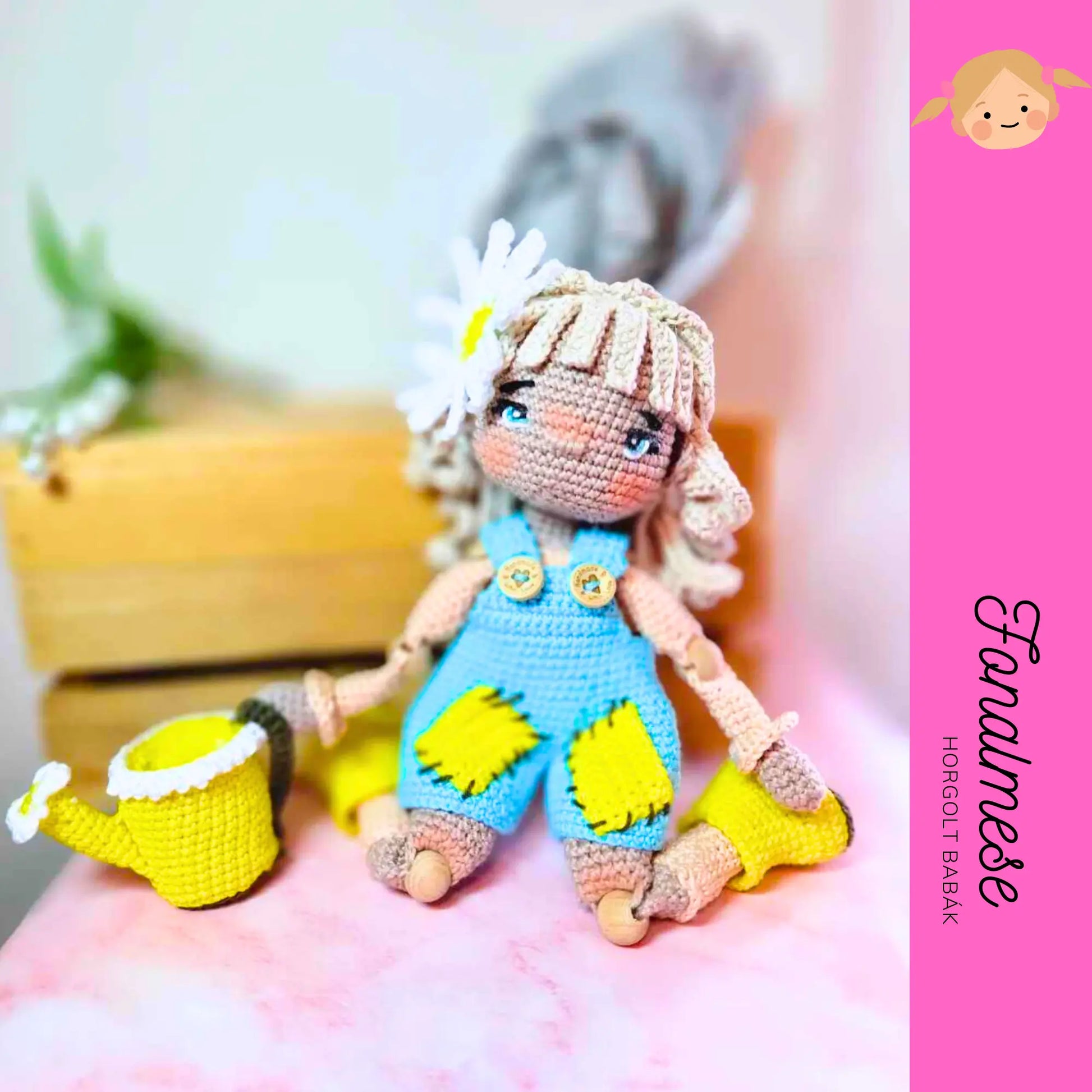 Készítsd el Zsuzsókát, ezzel a részletes horgolási mintával! Ez az imádni való baba, egy kertész ruhát visel, és tartozéka egy aranyos locsoló is. Különlegessége, a karjaiban, és lábaiban található ízület, ami egy kisebb fagolyó. Ruhája és gumicsizmája levehető. A baba nagysága 30 cm. A középhaladó szintű minta lépésről lépésre vezet végig az elkészítésen, világos utasításokkal és hasznos tippekkel, hogy egy hajlékony, szeretni való amigurumi babát készíts, amely biztosan mosolyt csal bárki arcára. Akár ajándékba szánod, akár a babagyűjteményed bővítve, ez a minta egy örömteli projekt lesz számodra. 🌸